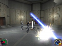 Játék Star Wars: Jedi Knight igazán át, amint a kezében a főszereplő hiányzik fénykard csere fegyverét. Lesz egy meghatározó sebesség és a gőz áramlik, kecses mozdulatok de még komolyan megfosztják juttatások, amelyek meghaladják a ellenség csoport. Mindez párosul a gyönyörű és fejtetőre bukfenc, bukfencezett kombinációk és villámcsapás. Skills főszereplő nő az egész játék, és a rendelkezésre álló ütés, trükkök és akrobatikus bukfencet vele. Összehasonlítva az első része a rendszernek gyűjtésére részecskék eltűnt erői a holttestét elesett ellenségek, most Kyle maga is energia előállítására, amely szükséges egy ideje, hogy használja a képességeit. A legizgalmasabb harc vár rád a csatában a lázadó Jedi, így nem költenek az összes erők a harcok egyszerű rohamosztagosok.