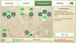 Rebel Inc politikai szimulátor gazdasági stratégia elemeivel. A játék Android-eszközökön érhető el.